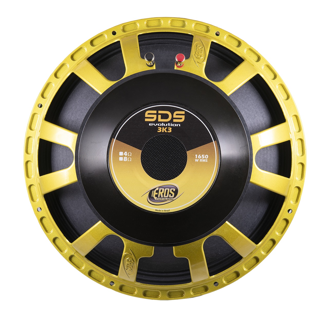 Projetado para reproduzir subgraves e graves mais firmes e com baixa distorção devido ao auxílio do novo anel de curto “Faraday” o SDS 3k3 Evolution de 15 polegadas suporta 1.650 W rms e possui novo design “Linha Pro”, novo desenho de borda com tecido mais grosso e tratamento especial, permitindo maior excursão, novo cone prensado e com fibras longas em formato reto, proporcionando maior rigidez e SPL.