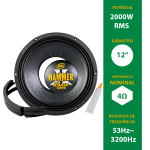 Reparo Alto-falante E12 HAMMER 4000 XBASS 2000W RMS – 4 Ohms