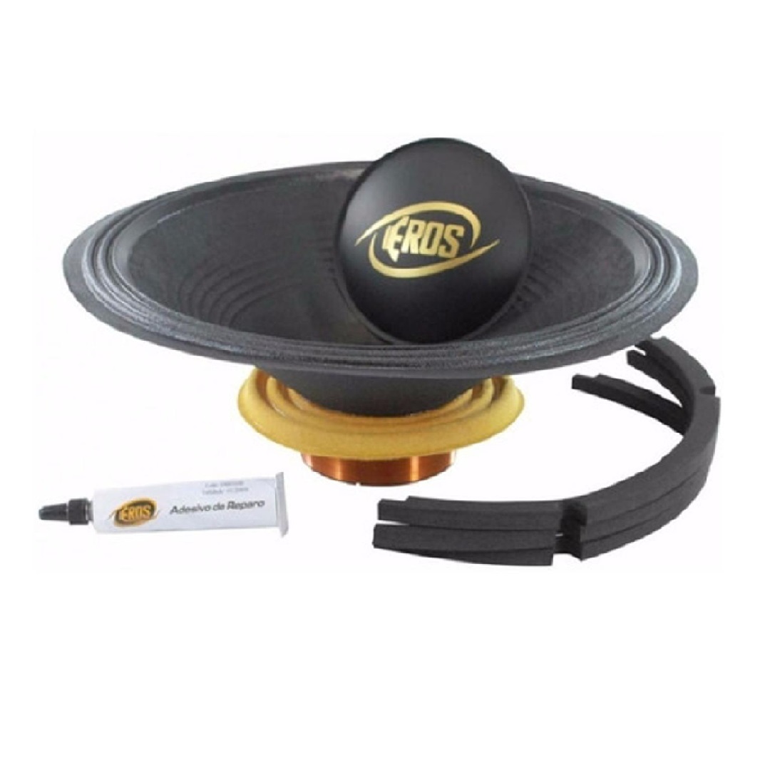 Kit Reparo Eros 100% original para modelo de Alto-falante E1200 MB – 600W RMS com impedância de 8 Ohms. Utilizados na manutenção de alto falantes danificados, os kits de reparo são procurados quando ocorre queima da bobina ou algum tipo de dano no cone do alto falante ou no driver. O kit reparo possibilita efetuar o reparo do alto, evitando assim a necessidade de compra de um novo alto falante.