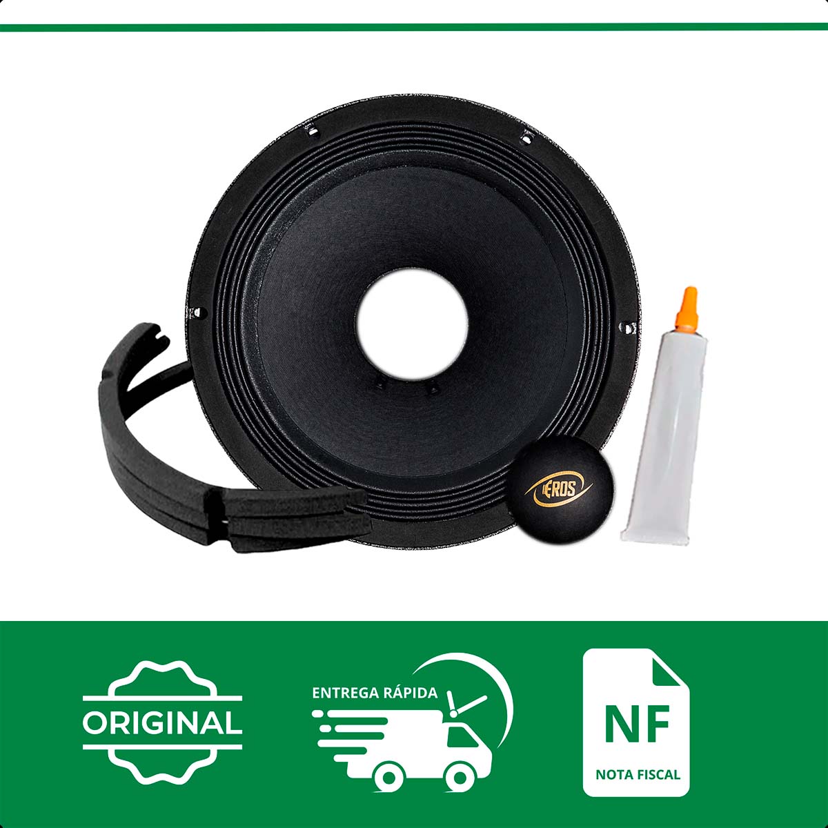 Kit Reparo Eros 100% original para modelo de Alto-Falante Eros E412 XH BLACK – 400W RMS, com impedância de impedância de 8 ohms. Utilizados na manutenção de alto falantes danificados, os kits de reparo são procurados quando ocorre queima da bobina ou algum tipo de dano no cone do alto falante ou no driver. O kit reparo possibilita efetuar o reparo do alto, evitando assim a necessidade de compra de um novo alto falante.