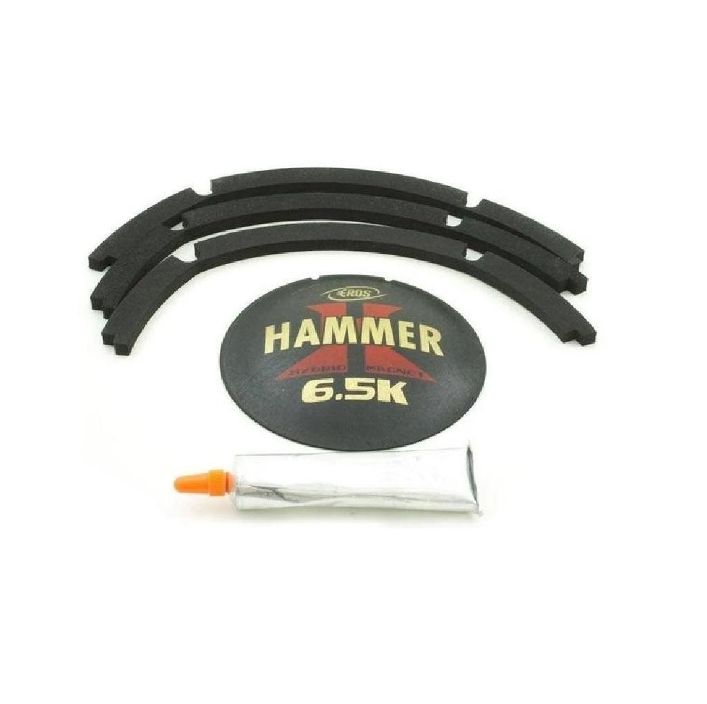 Kit Reparo Eros 100% original para modelo de Alto-falante E12 Hammer 6.5K – 3.250W RMS com impedância de 2 Ohms. Utilizados na manutenção de alto falantes danificados, os kits de reparo são procurados quando ocorre queima da bobina ou algum tipo de dano no cone do alto falante ou no driver. O kit reparo possibilita efetuar o reparo do alto, evitando assim a necessidade de compra de um novo alto falante.